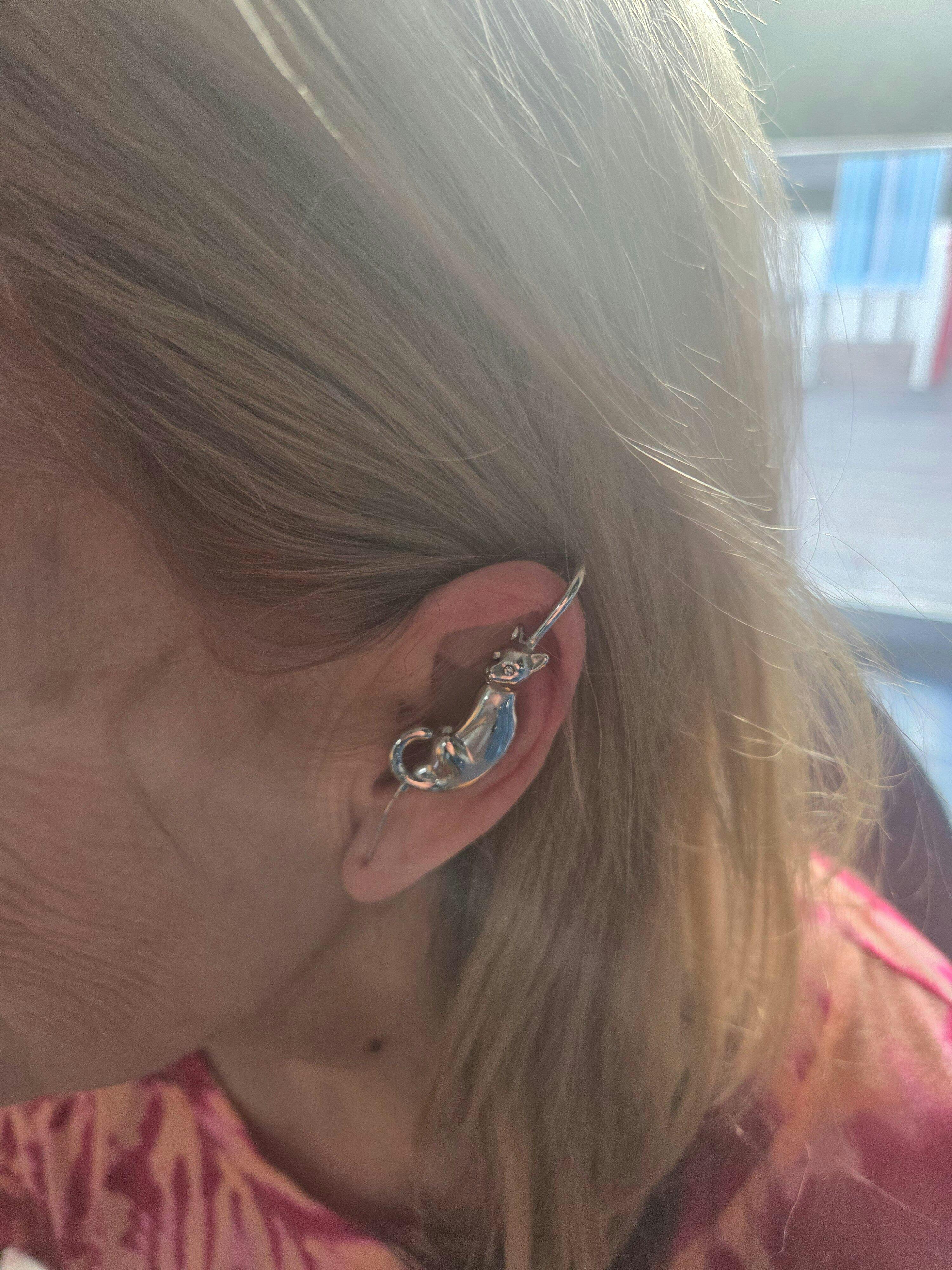 Unsere Helix-Hook-Ohrringe gleiten elegant über den oberen Teil des Ohrs und werden anschließend durch dein normales Ohrloch im Ohrläppchen geführt – ganz ohne zusätzliche Piercings. ✨