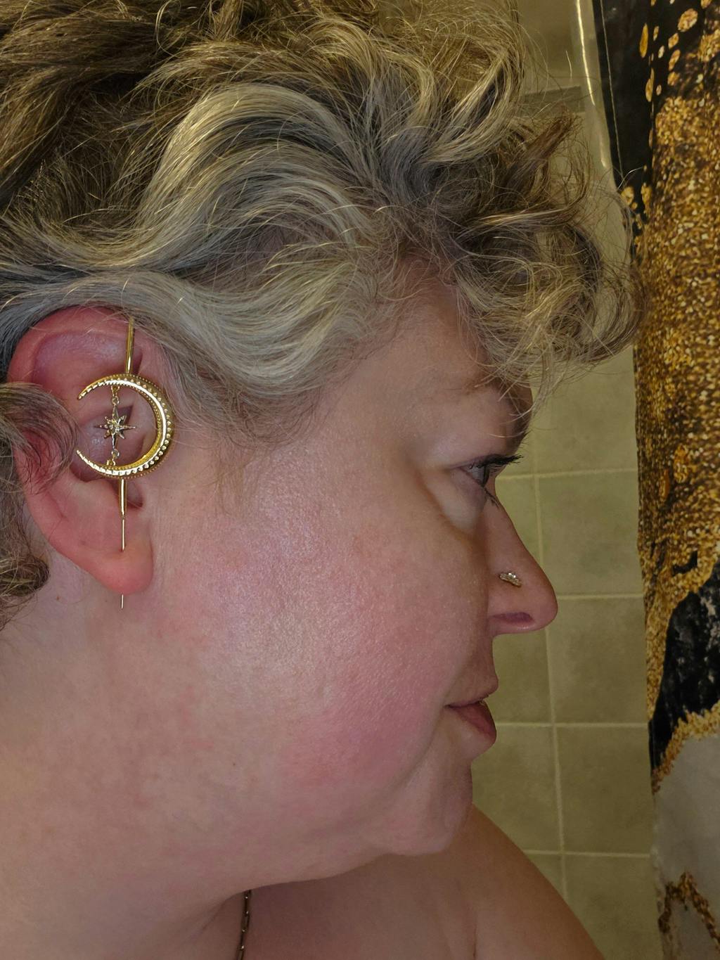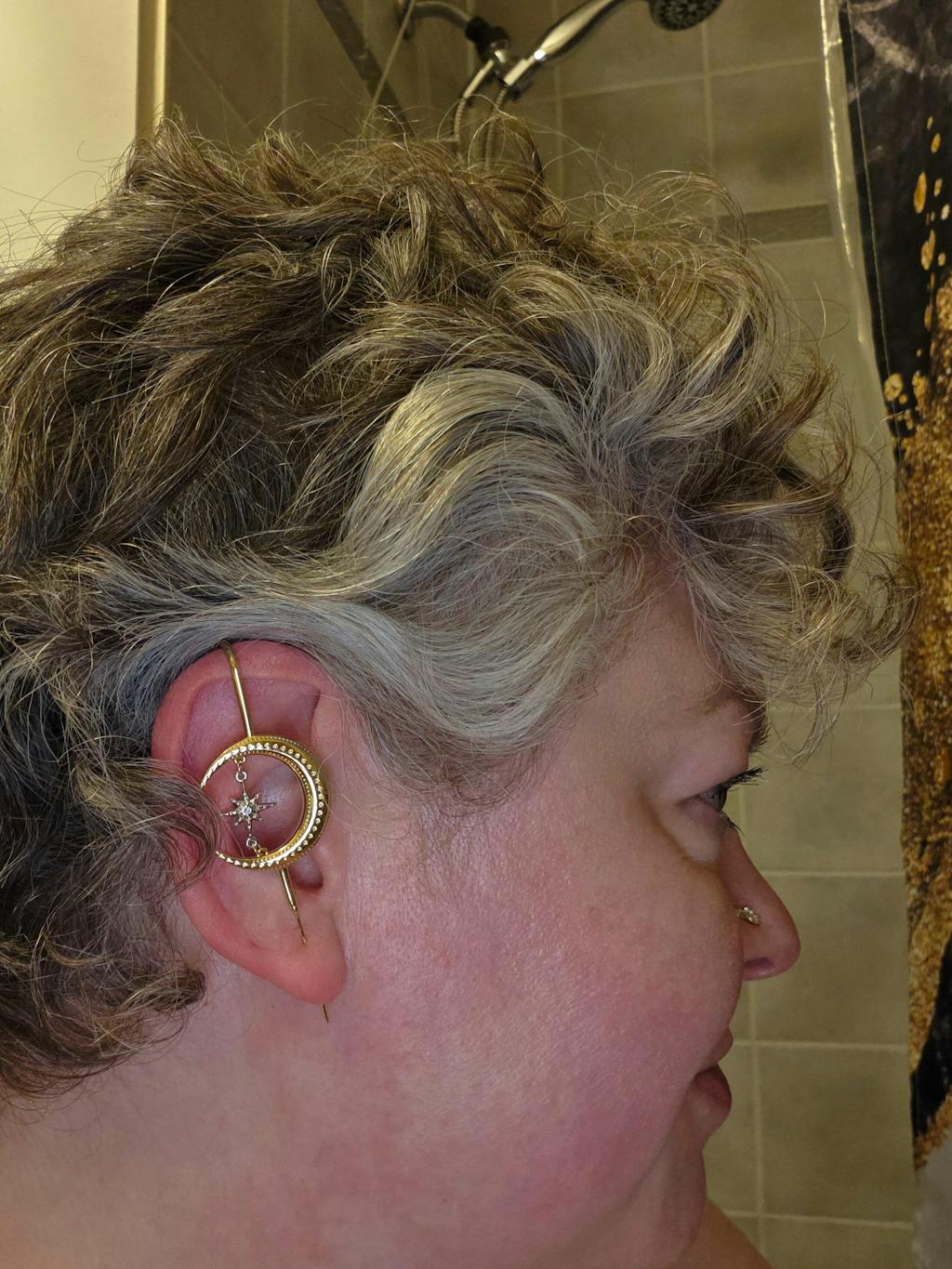 Unsere Helix-Hook-Ohrringe gleiten elegant über den oberen Teil des Ohrs und werden anschließend durch dein normales Ohrloch im Ohrläppchen geführt – ganz ohne zusätzliche Piercings. ✨