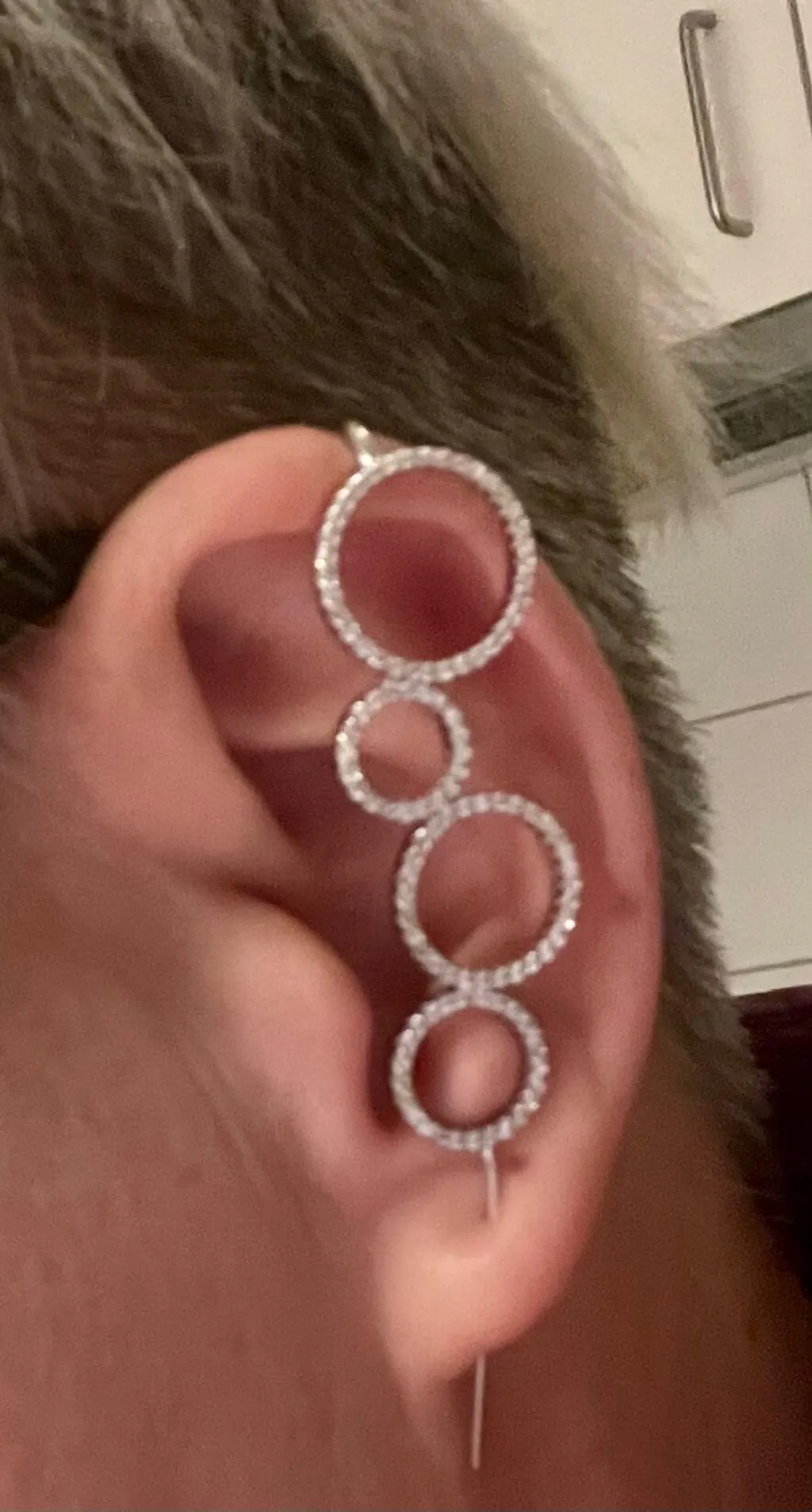 Unsere Helix-Hook-Ohrringe gleiten elegant über den oberen Teil des Ohrs und werden anschließend durch dein normales Ohrloch im Ohrläppchen geführt – ganz ohne zusätzliche Piercings. ✨